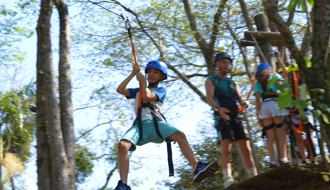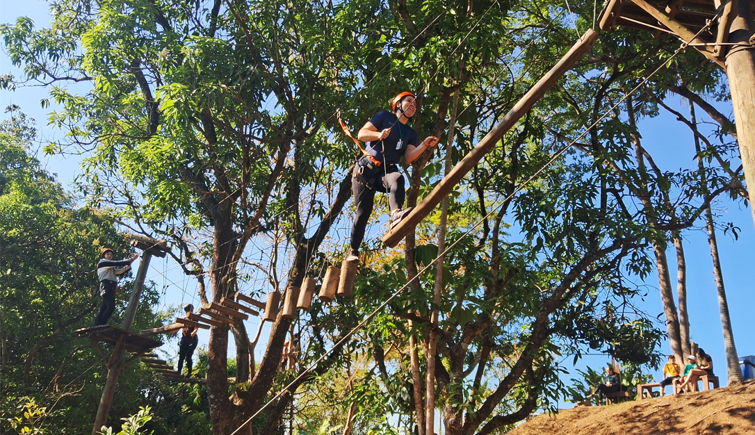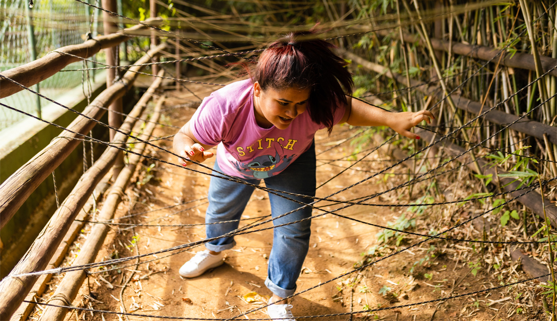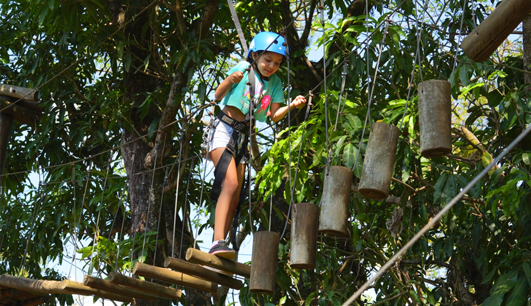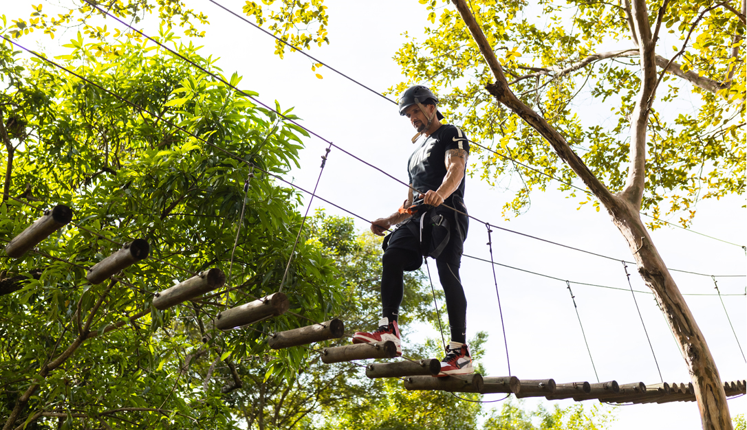 O percurso de obstáculos em meio ás árvores tem 50 metros de comprimento, suspenso a 4 metros de altura em seu ponto máximo.