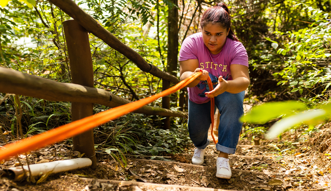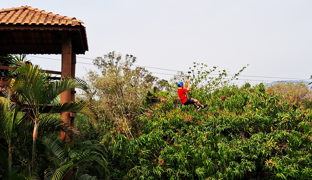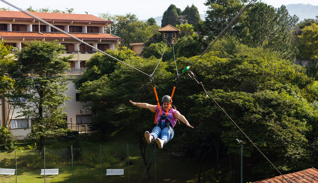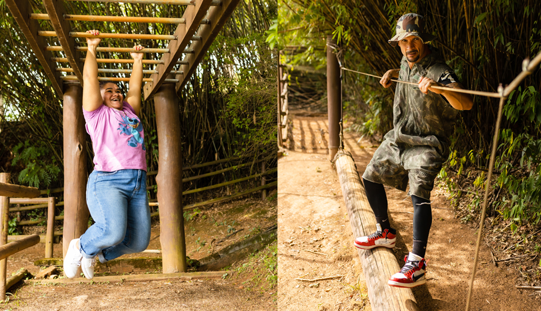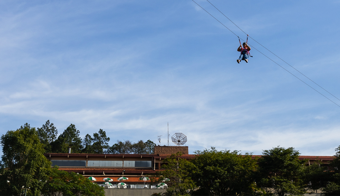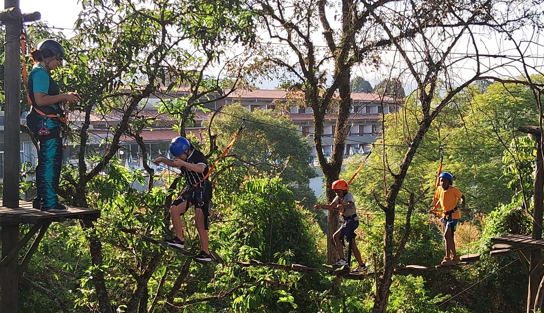 O percurso de obstáculos em meio ás árvores tem 50 metros de comprimento, suspenso a 4 metros de altura em seu ponto máximo.
